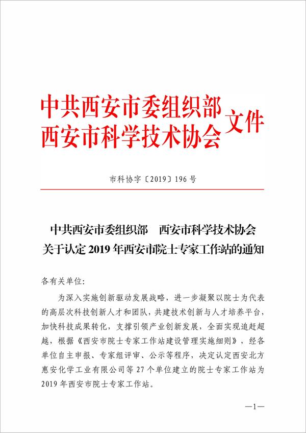 2019年12月25日,中共西安市委组织部、西安市科学技术协会颁布了《关于认定2019年西安市院士专家工作站的通知》(市科协字〔2019〕196号),我校被授予“2019年西安市院士专家工作站”。 本次获批的西安市院士专家工作站是基于西安医学院陈志南院士专家工作站,由基础与转化医学研究所进一步凝炼、协调申报并获批。在此向陈志南院士工作站及基础与转化医学研究所表示祝贺。