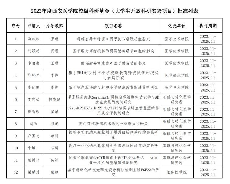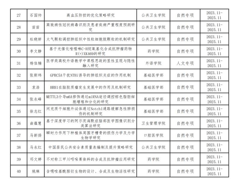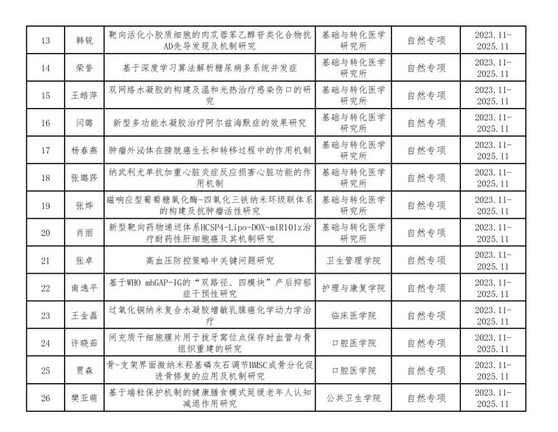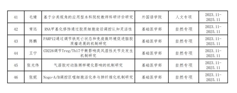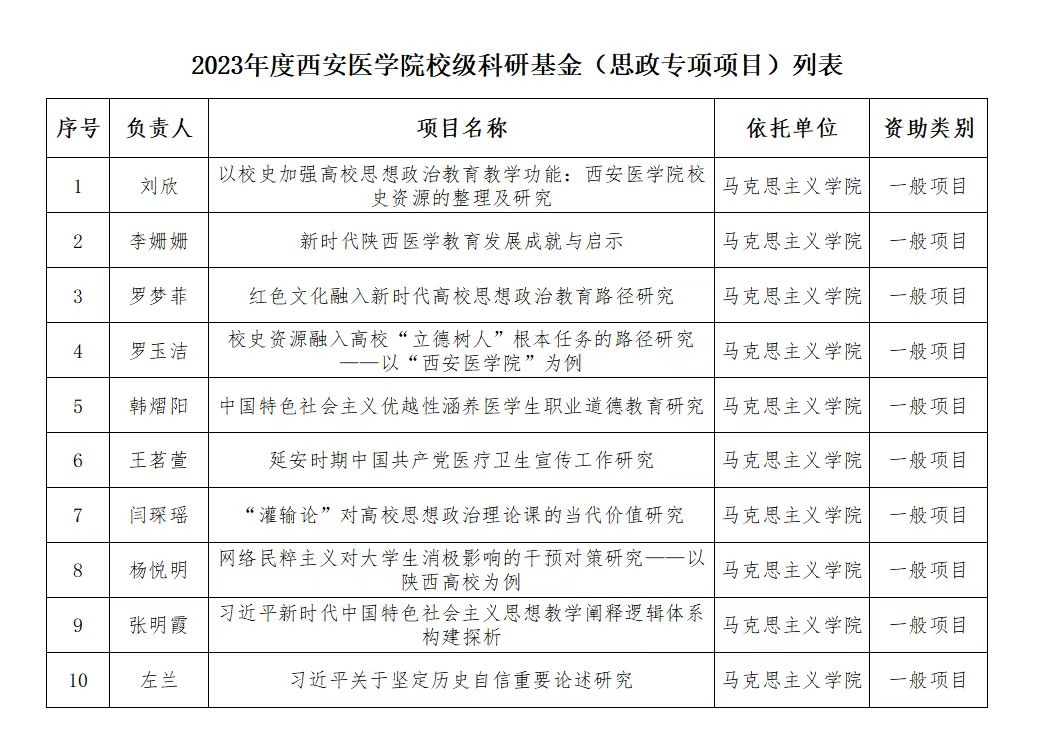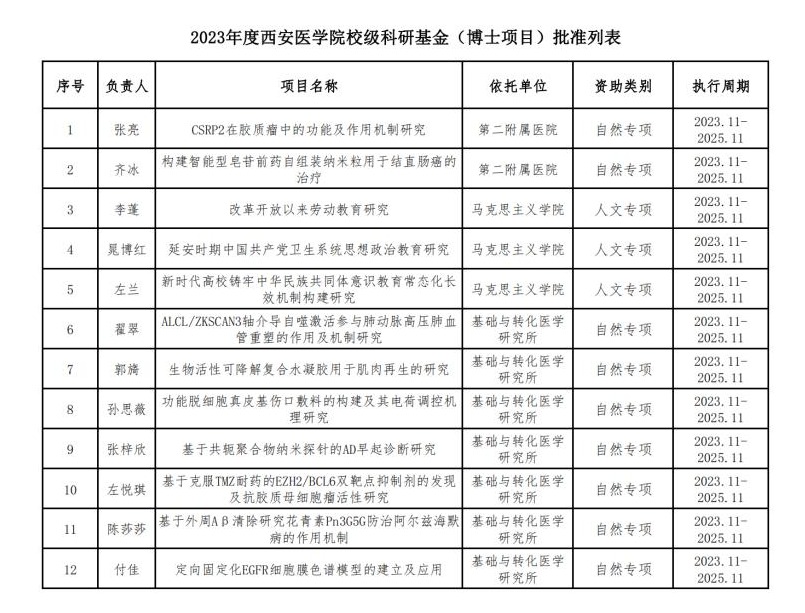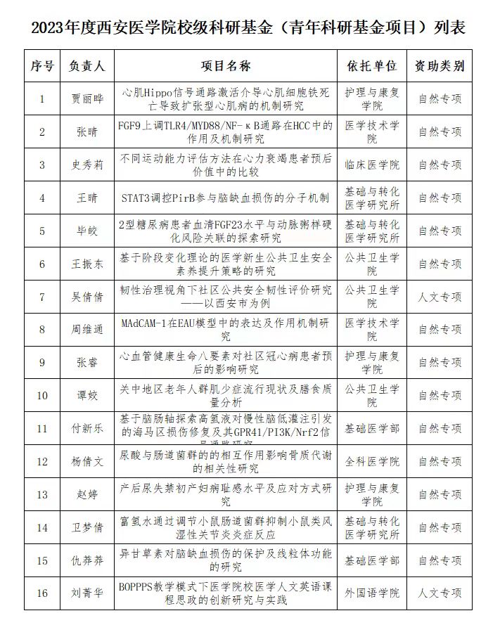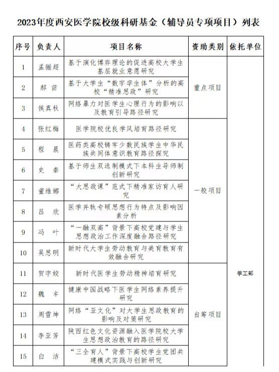 现将2023年度校级科研基金拟立项项目类别、项目名称、项目负责人、依托单位进行公示。