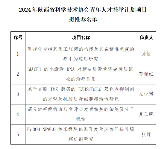 附:2024年陕西省科学技术协会青年人才托举计划项目拟推荐名单