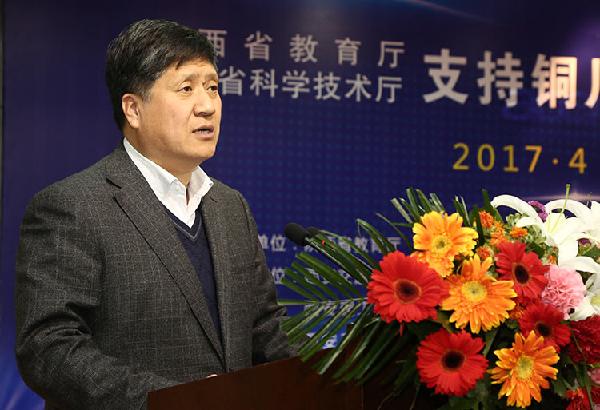 (科技处)4月21日,省教育厅、省科技厅支持铜川转型发展对接会在铜川市银河会议中心召开。应铜川市有关部门要求及省教育厅工作安排,我校由科技处副处长唐俐玲带队,教务处处长和新盈、护理学院副院长周小兰、基础医学研究所赵玉峰博士,药物研究所冯锁民博士等一行7人参加了会议。会议由铜川市副市长丁德明主持,省教育厅厅长王建利、铜川市委书记郭大为、省科技厅副厅长孙科分别作了重要讲话。省内17所高校、部分科研院所、铜川市人事局、科技局、发展和改革委员会等部门负责人及有关专家学者100余人参加了会议。
