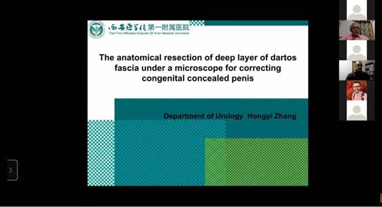 张鸿毅教授分享的是我院独创的“先天性隐匿阴茎”的手术经验。通过图片及手术视频,向全球泌尿外科专家介绍了我院泌尿外科团队发现的这个新的阴茎解剖结构,并依据此解剖结构所全新设计的显微镜辅助阴茎浅筋膜深层切除术。