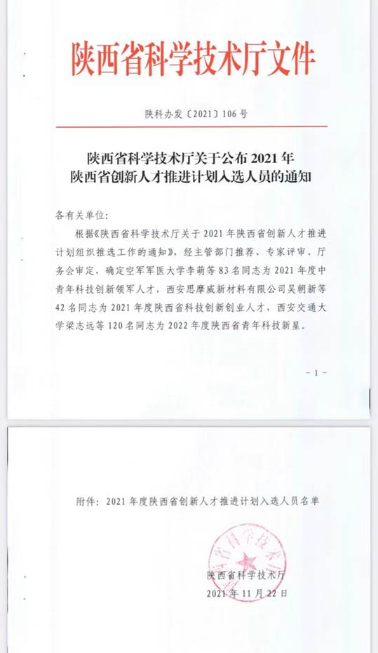 2021年度陕西省创新人才推进计划获批文件