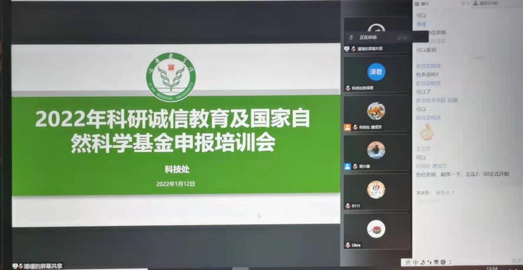 2022年1月12日,我校2022年度科研诚信教育及国家自然科学基金申报培训会议成功在线上举办。本次会议主要对我校教师开展科研诚信教育和科研伦理审查培训,传达国家自然科学基金西北片区工作会议精神,安排布置我校国科金申报工作部署。会议由科技处唐成芳副处长主持,苟兴春处长指导讲话。各二级单位负责人、科研管理人员及全校教师近500人参加了申报培训会。