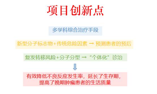 崔洁教授团队围绕恶性肿瘤新型分子标志物和分子靶向治疗进行了临床和基础研究,临床治疗采用多学科综合治疗手段,结合新型分子标志物和传统危险因素预测患者的预后,根据复发转移风险和分子分型对患者进行“个体化”诊治。该项目在国内率先提出结合新型分子标志物和传统危险因素,形成一种全新的预后评价系统,对前列腺癌、卵巢癌的预后进行评估,根据复发转移风险制定个体化的诊疗方案,使患者的治疗规范化和精准化。研究成果在多家医疗机构应用,有效地提高了晚期肿瘤患者的生活质量,降低不良反应发生率,延长了生存期,并在一定程度上降低了患者和社会的经济负担。