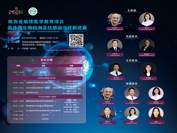 5月20日下午,由西安医学院第一附属医院检验科联合全国血流感染细菌耐药监测联盟(BRICS)共同举办“临床微生物检测及抗感染治疗新进展”省级继续医学教育项目(项目编号:2022-11-03-001(陕))。为了避免聚集,本次会议严格遵守防疫要求,采取线上会议形式。