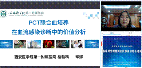 西安医学院第一附属医院检验科微生物专业组副组长辛娜老师讲了《PCT联合血培养在血流感染诊断中的价值分析》,她结合大量文献及实际工作中的临床案例分享了PCT和血培养联合检测在提高诊断灵敏度、评估患者疗效及预后、帮助鉴别污染菌中的作用。