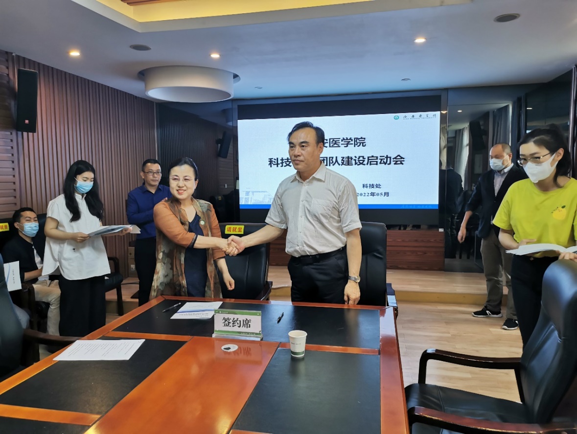 杨帆与创新团队负责人签订了建设目标责任书,他强调,一是科技创新团队建设势在必行。科技创新是科技强国、带动社会发展的重要基础,更是我校谋求高质量发展、提升学校办学层次和核心竞争力的关键。科技支撑,提质增效。2022年是学校提质增效和高质量发展的关键一年,科技创新团队是科技创新的核心要素,相关职能部门、二级院(部、所)、创新团队要上下联动,将2022年作为科技创新团队建设年和重要推进年,从“强内涵”入手,在科研上下功夫,狠抓落实,扎实推进,推动学校科技创新能力快速提升,促进学校整体实力迈上一个新台阶。二是科技创新团队建设要有章可循。组建团队,重在建设,团队负责人要切实负起责任,主动发挥“传、帮、带”作用,培养创新型人才,带领团队有的放矢开展项目研究和成果培育。我校现有的高水平省级创新团队、高校创新团队等要发挥“领头羊”效应,敢于啃“硬骨头”,主动服务地方,拓宽视野,推动产学研联动,与社会发展相融合,产出高质量成果。三是科技创新团队应加强管理。各部门要积极整合现有资源,打通内外、合理调配,建立良好的激励考核机制,切实为团队做好服务工作。