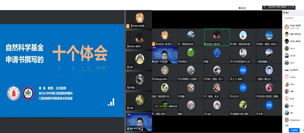 本次培训会特别邀请了国家自然科学基金杰青和优青获得者四川大学华西口腔医院的袁泉教授以《自然科学基金申请书撰写的十个体会》为题进行项目申报指导。我校本部及附属医院拟申报2023年度国科金项目教师、有兴趣的科研人员以及相关工作人员共计300人参会。会议由科技处副处长唐成芳主持。