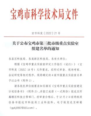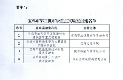宝鸡市重点实验室是市级科技创新体系的重要组成部分。未来,实验室将不断加强行业科技合作与交流,开放和共享科技资源,开展产学研合作,推动技术扩散和技术储备,促进科技成果转移转化。为陕西地方经济发展、秦创原创新驱动平台建设提供有力的科技支撑!(供图:附属宝鸡医院 审核:苟兴春)