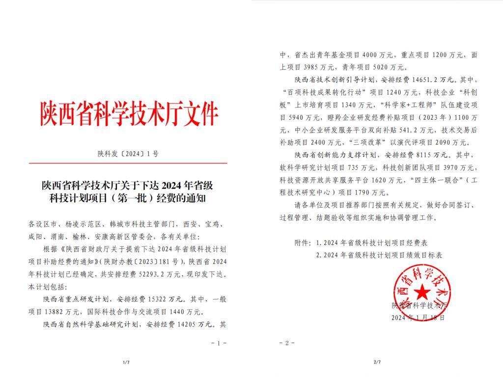 日前,陕西省科学技术厅发布了《陕西省科学技术厅关于下达2024年省级科技计划项目(第一批)经费的通知》(陕科发〔2024〕1号),我校共申报2024年度陕西省科技计划项目(第一批)163项,第一批次获批项目49项,立项经费总额326万元,和上一年度相比,立项数量增长18%,立项金额增长29%,平均资助率达30%。其中,获批省自然科学基础研究计划项目35项、陕西省重点研发计划项目(一般项目和国际科技合作与交流计划)11项、省创新能力支撑计划3项。