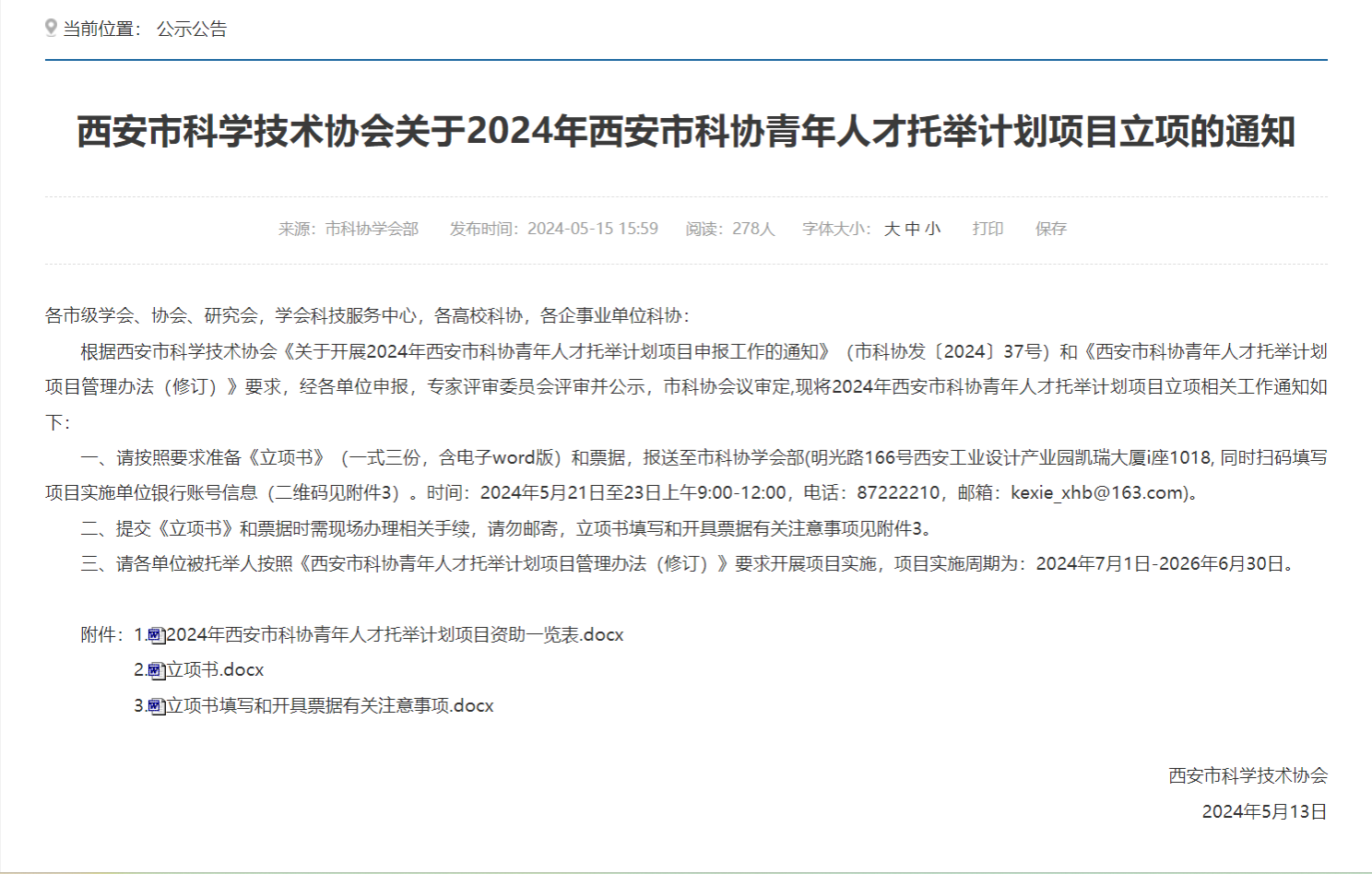 西安市科协青年人才托举计划项目旨在拓展科协服务科技工作者、服务创新驱动发展工作,促进青年科技人才成长,指导青年科技人才夯实“职业起步期”、开启“创新黄金期”,提高我市人才未来科技竞争力,为西安打造新动能强劲的国家创新名城提供坚强人才支撑。西安市科协面向各市级学会、协会、研究会,各高校科协、企事业科协组织申报,每年共资助项目100个。