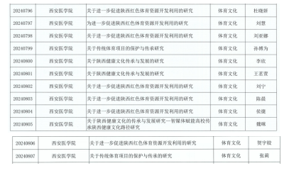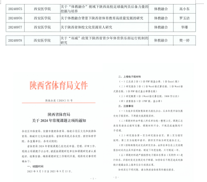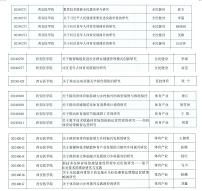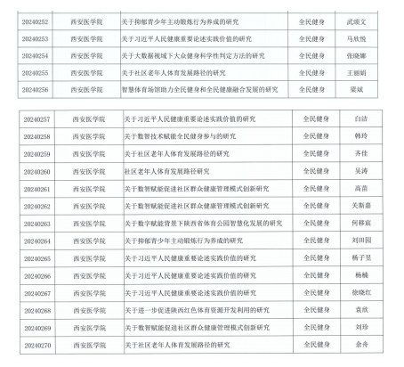 西安医学院2024年度陕西省体育局常规课题立项名单