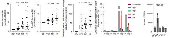 利用CDEM进化胞嘧啶碱基编辑器BE3,在BE4结构上进化的胞苷脱氨酶变异体不仅显示出狭窄的编辑窗口,而且具有更高的编辑纯度和低脱靶活性