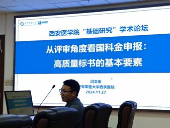 11月27日,我校2025年国科金申报辅导暨省级重点实验室“基础研究”学术论坛(第三十五期)在未央校区图书馆一楼会议室成功举办。本次论坛由陕西省缺血性心血管疾病重点实验室、陕西省脑疾病防治重点实验室及我校科技处共同承办。邀请我国心血管领域著名专家、国家优青项目获得者西京医院心内科闫文俊教授主讲,科技处处长苟兴春主持。重点实验室全体成员及我校心血管领域研究者共30余人参加。