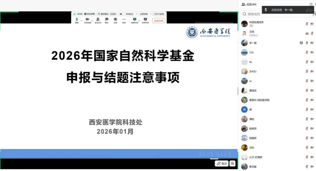 此次会议及时、务实、指导性强,为我校科研人员顺利开展2026年度国家自然科学基金申报工作奠定了扎实的政策与规范基础,为我校教师2026年国家自然科学基金申报提供了良好指导!下一步,科技处将继续做好组织服务、伦理审查辅导与形式审查支持,助力我校科研人员在国家级项目申报中再创佳绩。