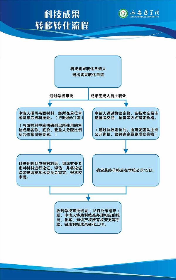 西安医学院科技成果转移转化流程示意图