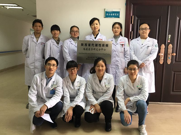 陕西省代谢性疾病临床医学研究分中心以西安医学院第一附属医院内分泌科为基础,科室是集临床、教学、科研及管理为一体的学科。目前科室拥有着一支内科知识全面、专业知识扎实、人才梯队结构合理的工作团队:高级职称5名,硕士生导师2名,主治医师5名,住院医师6名;博士学位2名,硕士学位14名,省级医学会委员11名。同时,本学科拥有动态血糖监测系统、胰岛素泵、外周血管多普勒、空气波压力治疗仪、红外线治疗仪、中频治疗仪、感觉阈值测定等多项与糖尿病及其并发症诊治相关的技术支持设备。本学科在内分泌系统疾病的诊断及治疗方面,如糖尿病及其并发症(尤其是糖尿病足的诊治)、甲状腺疾病、肥胖、骨质疏松的早期诊治等方面积累了丰富的临床经验,对肾上腺、垂体疾病、内分泌性高血压、内分泌性打鼾、肥胖、脂代谢异常、更年期综合征及水、电解质(钾、钠、钙、镁等)紊乱的诊治均具有较高的水平。同时,逐步形成以糖尿病、甲状腺、肥胖及骨质疏松等代谢性疾病的诊断及治疗为显著特色的医教研平台。