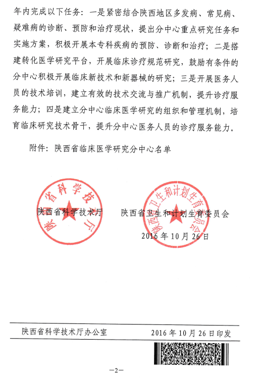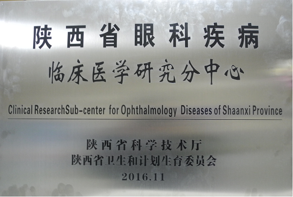 陕西省眼科疾病临床医学研究分中心目前有全职在岗医疗技术人员37人,其中医师17人,技师3人,护士17人。17名医师中,主任医师3人,占17.65%,副主任医师5人,占29.41%,主治医师4人,占23.53%,住院医师5人,占29.41%。博士1人,占5.88%,硕士8人,占47.06%,学士8人占47.06%。眼科为陕西省优势学科、陕西省眼科学精品资源共享课程、西安医学院重点学科、西安市白内障手术定点医院及“西安市白内障复明手术先进集体”,技术力量雄厚,学科带头人为留美博士后,目前开放床位数50张,拥有独立的免疫眼病研究所及视光中心,年住院患者2000余人。目前能开展三级甲等医院要求的所有眼科技术,并且在国内率先开展了人工角膜移植手术及青光眼引流钉等技术,在我省乃至国内均有一定影响力。专业分科和发展方向:(1)青光眼、白内障组,(2)眼底病组,(3)角膜病及免疫眼病组,(4)眼整形美容、泪道组,(5)小儿眼病组,(6)眼视光组。科研方面:主持国家自然科学基金2项、省科技厅基金3项、省教育厅基金3项、省卫生厅基金1项、西安市科技局基金1项,校自然科学基金1项、院级科学基金1项、校级教改及思政课题3项。科内发表论文100余篇,其中包括国际眼科学影响因子最高的专业杂志《Invest Ophthalmol Vis Sci》在内SCI收录论文24篇,美国医学生教科书«retina degeneration»收录章节1篇。